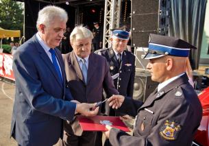 Po wręczeniu odznaczeń odbyło się uroczyste ślubowanie najmłodszych członków Młodzieżowej Drużyny Pożarniczej. Następnie głos zabrali zaproszeni goście gratulując tak wspaniałego jubileuszu oraz nowego samochodu, a na ręce pełniącego od 22 lat Prezesa OSP Jana Sztafińskiego wręczyli pamiątkowe tablice, puchar i kwiaty.