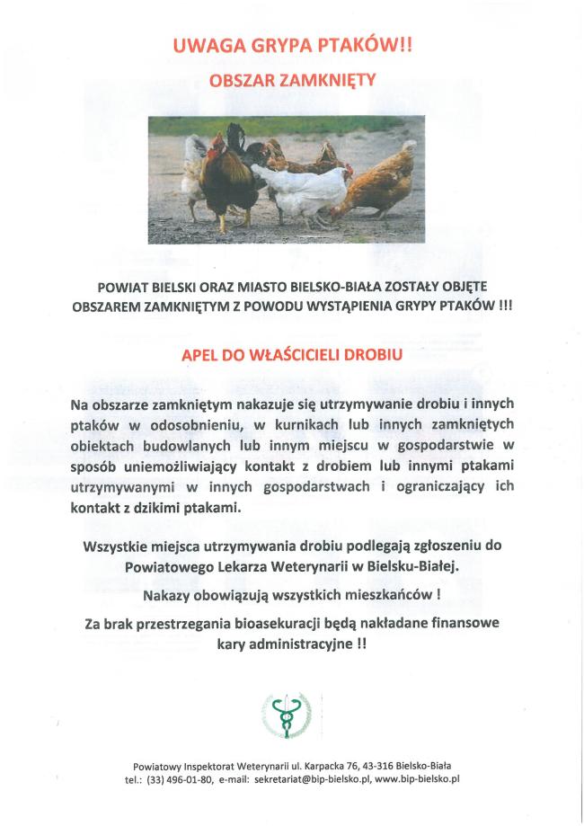 APEL DO WŁAŚCICIELI DROBIU-PTASIA GRYPA