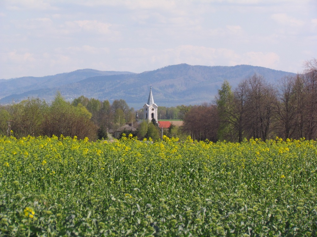 8. Dominująca w krajobrazie Hecznarowic wieża kościoła