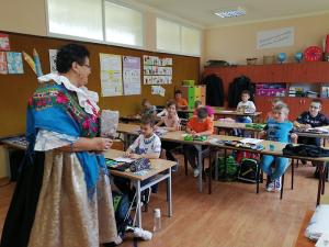 Był to „Dzień Głośnego Czytania”, który promował czytelnictwo wśród dzieci i młodzieży. Panie z koła ubrane w stroje regionalne naszej miejscowości, opowiadały także dzieciom o historii czytelnictwa w naszej miejscowości o Towarzystwie Szkoły Ludowej.