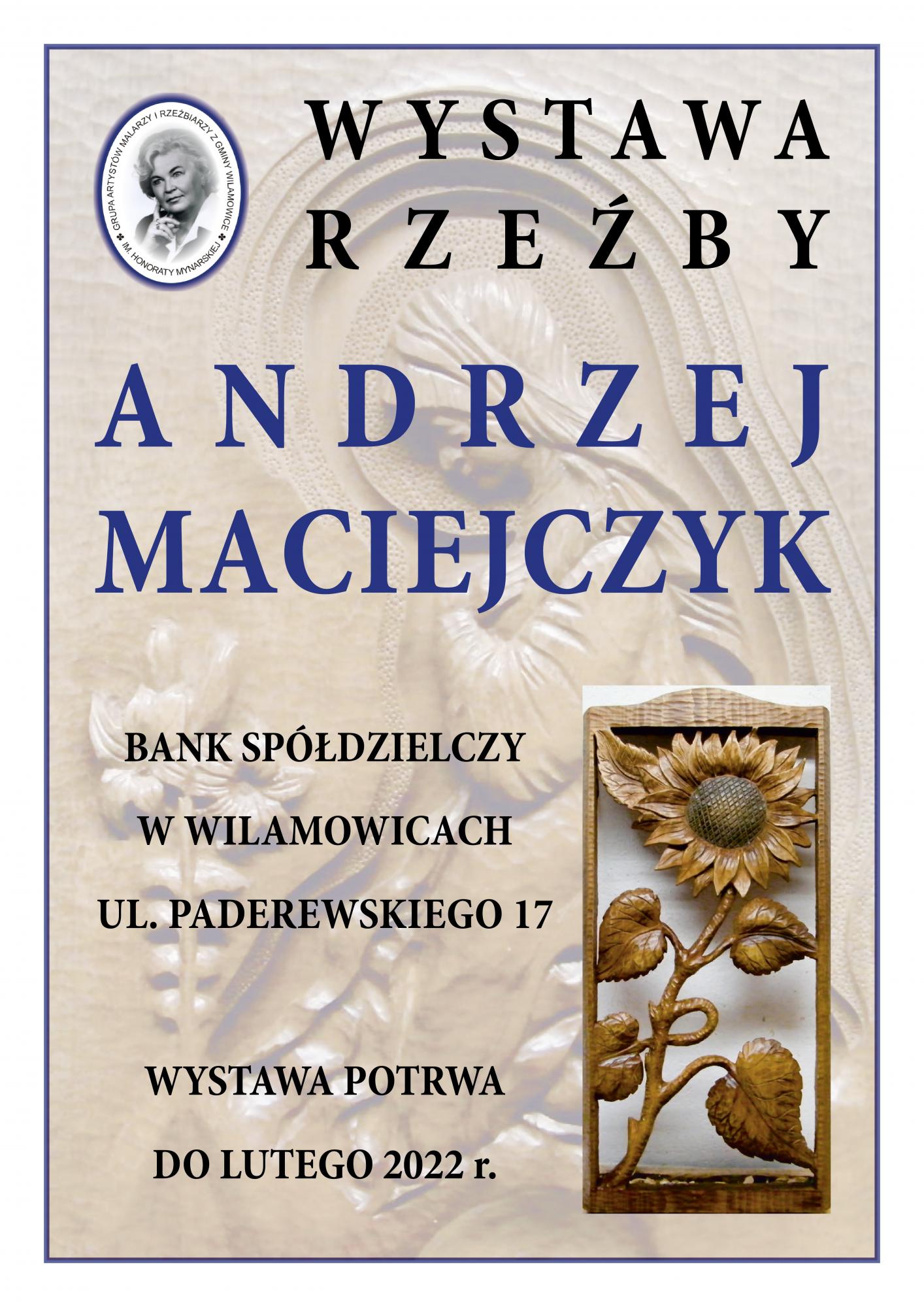 Grupy Artystów Malarzy i Rzeźbiarzy z Gminy Wilamowice im. Honoraty Mynarskiej zaprasza na wystawę rzeźby Andrzeja Maciejczyka