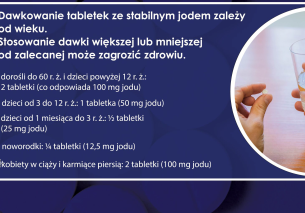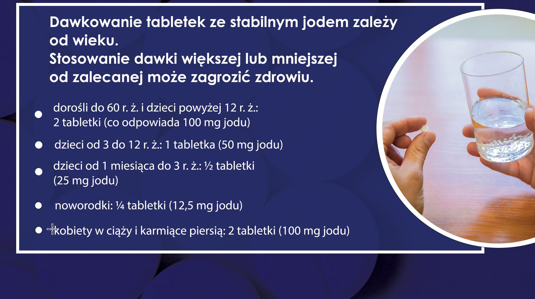 • kobiety w ciąży i karmiące piersią - 100 mg jodu (2 tabletki).