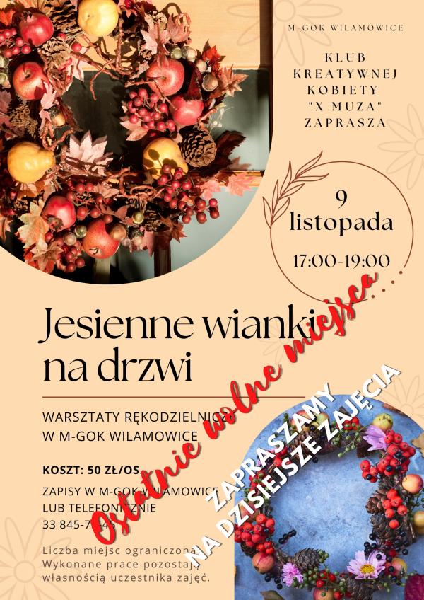 Już dziś zajęcia rękodzielnicze "Jesienne wianki na drzwi". Zostały ostatnie wolne miejsca!