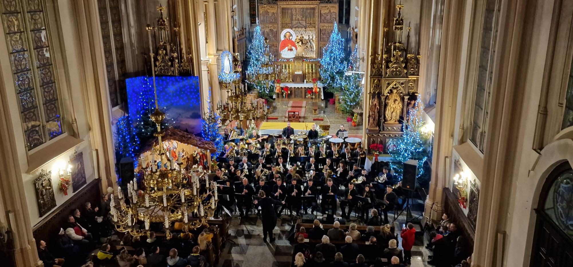 Członkowie Orkiestry Dętej pod batutą kapelmistrza Mariusza Płonki zapewnili zebranym muzyczą ucztę. Zabrzmiały między innymi marsze (w tym dobrze nam znany i lubiany Marsz Radeckiego), kolędy oraz utwory muzyki filmowej i popularnej, ponadto koncert uświetnili swoimi występami wokalnymi soliści. Sanktuarium wypełnione było po brzegi widzami, którzy nagrodzili Orkiestrę owacjami na stojąco.