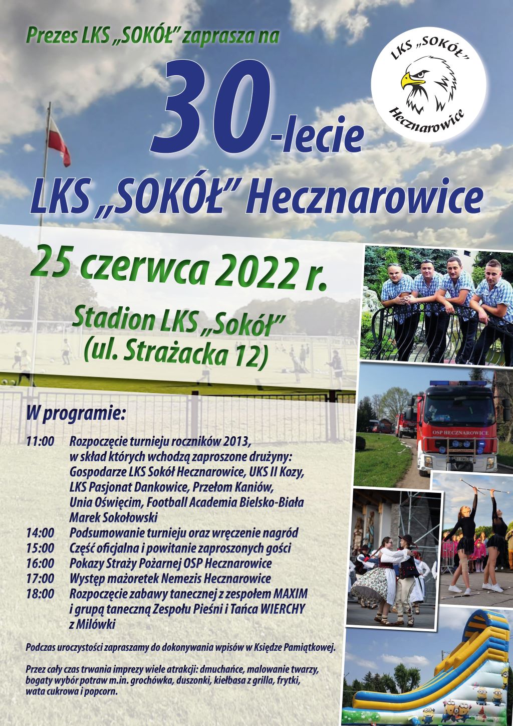 LKS "Sokół" Hecznarowice zaprasza na świętowanie 30-lecia działalności!