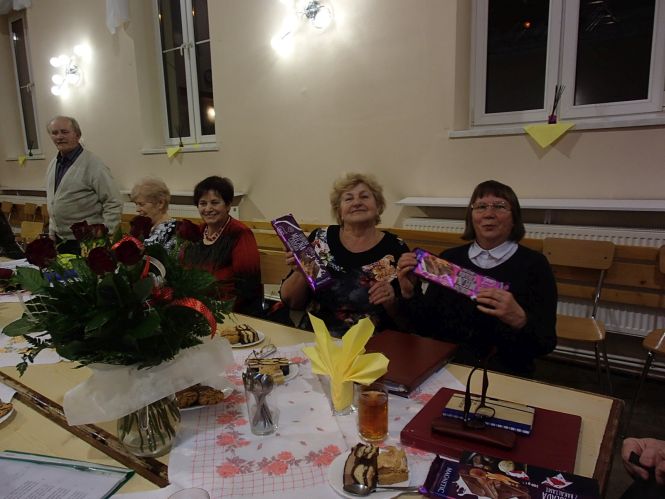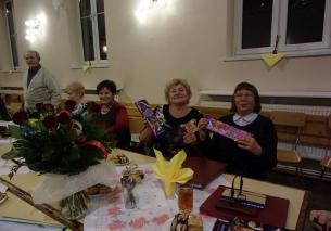 Pani Basia upiekła ciasto „Usta Adama”, a pani Czesia „Jabłkowy Rarytas”. Ciasta jak na tę uroczystość były nie tylko pyszne, ale i trafne z nazwy. Panowie wręczyli każdej Pani „dużej czy małej” po dużej - kalorycznej czekoladzie, natomiast najmłodsze członkinie zespołu Kaja, Wiktoria i Zuzia wręczyły panom słodkie belgijskie łakocie. Po tych pysznościach można było pomyśleć o „odkładaniu sadełka”. Ale nic z tych rzeczy. Zadbała o to w 100% nasza choreograf Bogusia, szlifując i nie dając wytchnienia członkiniom podczas próby nad nowym programem. Program ten będzie zaprezentowany na „Wiosennym spotkaniu kobiet 2018-Rok Praw Kobiet w Polsce”. Spotkanie to organizuje Zarząd Koła Gospodyń Wiejskich dla wszystkich swoich członkiń jak i zaproszonych gości w kawiarni Fest Park 10 kwietnia br.