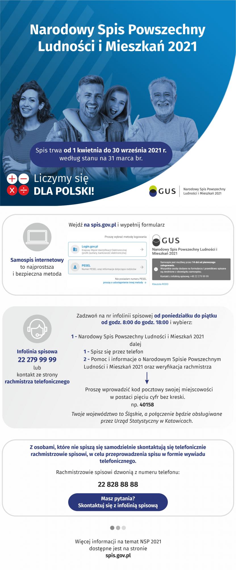 Od 1 kwietnia 2021 r. Główny Urząd Statystyczny realizuje Narodowy Spis Powszechny Ludności i Mieszkań.