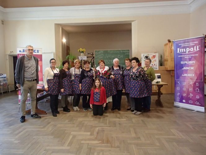 W dniu 6 kwietnia br przyjechał p. Adam Zieliński, przedstawiciel Firmy IMPALL - Generalnego Dystrybutora maszyn z Łodzi wraz z panią Katarzyną - instruktorką i 10 pięknych fartuszków, wyszło spod „igły” maszyn do szycia JUKI i sprawnych rąk naszych członkiń. A specjalna torba tzw. „shopperka” uszyta została przez najmłodszą uczestniczkę, została także ozdobiona szeregiem wzorów pięknego haftu.