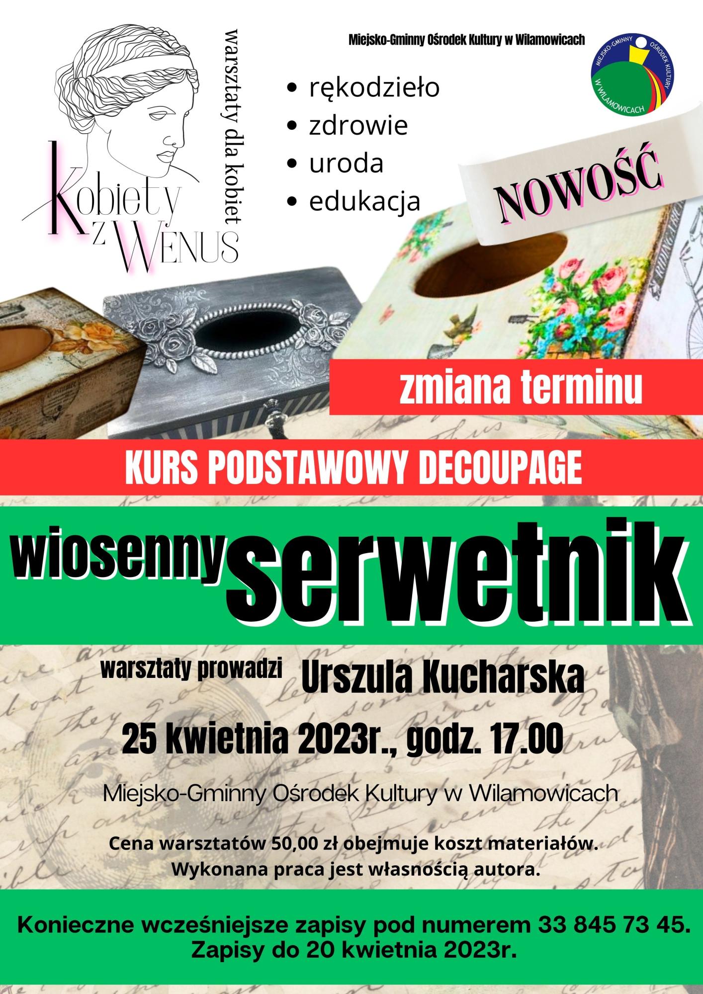 Nowa cykl "Kobiety z Wenus". Kurs podstawowy decoupage wiosenny serwetnik