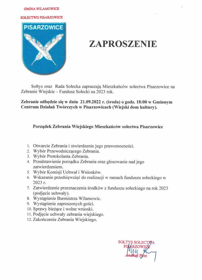 Zebranie wiejskie - Sołectwo Pisarzowice