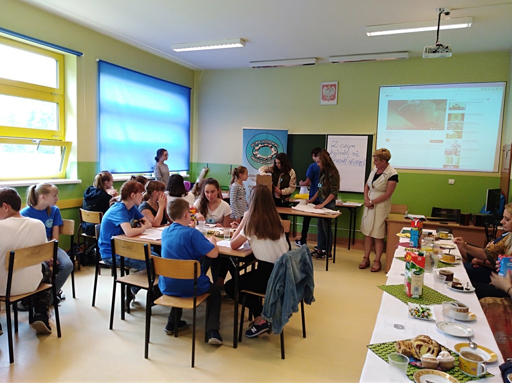 Mieliśmy przyjemność powitać delegatów i opiekunów z sąsiednich szkól. Dzieci miały okazję zapoznać się ze sposobami zachowań w różnych miejscach i sytuacjach. Po części teoretycznej i wysłuchaniu krótkiej historii Savoir-vivr’u, uczniowie wykonali między innymi prawidłowe nakrycie do stołu. Brali też udział w wylosowanych przez siebie scenkach aktorskich. Były one przeciwieństwem dobrych manier, dzięki czemu skłaniały wszystkich do cennych komentarzy i uwag, - co należałoby zmienić w danej sytuacji, aby być kulturalnym człowiekiem.