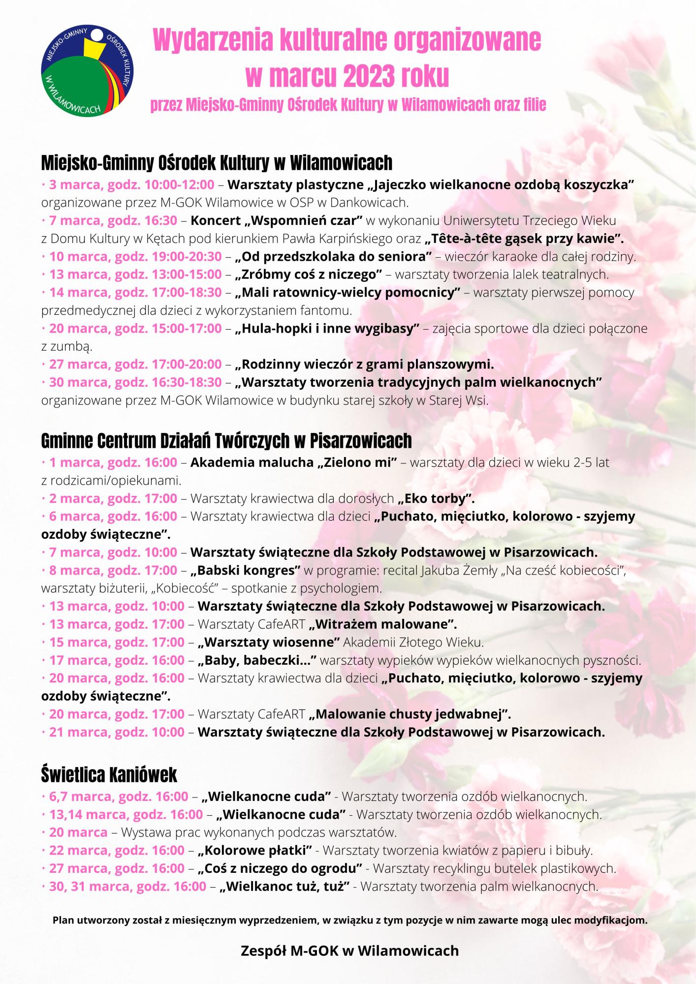 Plan wydarzeń kulturalnych na miesiąc marzec 2023