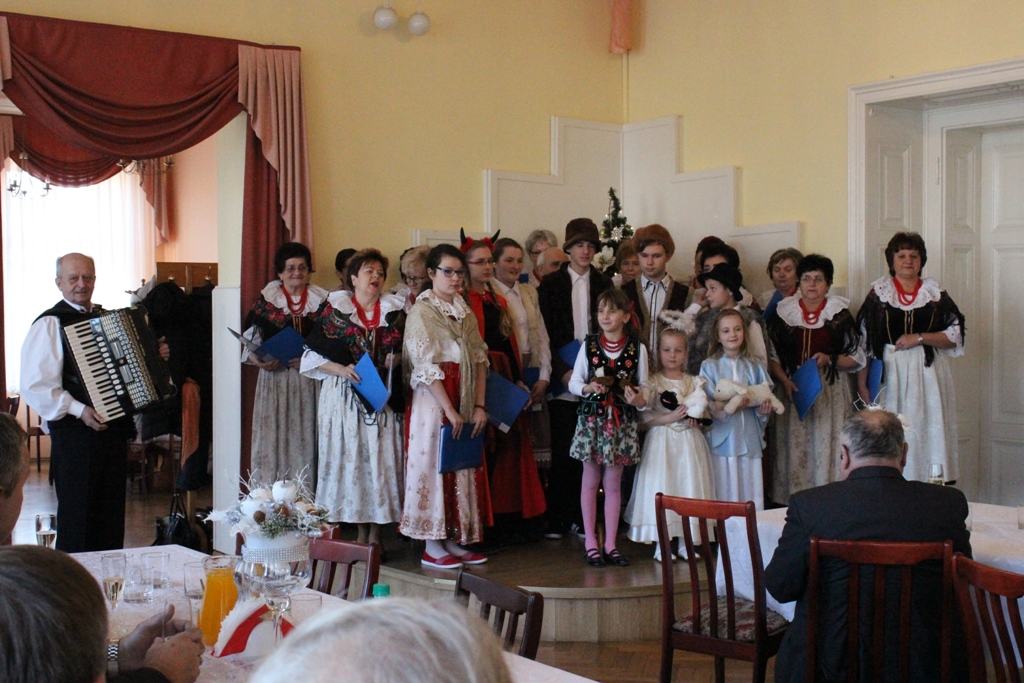 Podczas Świątecznej Sesji nie zabrakło życzeń dla członków zespołu od Burmistrza Mariana Treli, Radnego powiatu Jerzego Kubika oraz wspólnego śpiewu naszych staropolskich, przepięknych kolęd przy akompaniamencie pana Stanisława Olearczyka, wspaniałego poczęstunku i toastu za pomyślność w Nowym 2016 roku.