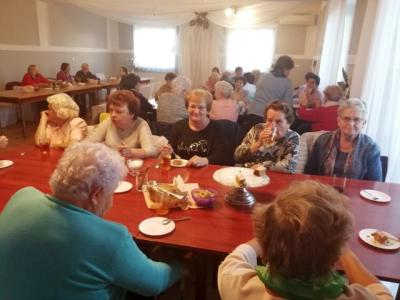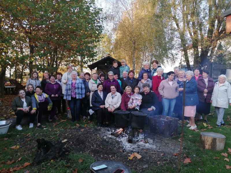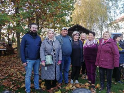Najpierw było biesiadowanie przy kociołkach w których to nad ogniskiem dusiły się jesienne duszonki. Następnie rozśpiewana i bardzo gwarna grupa przeniosła się do pomieszczeń, by degustować pachnące duszonki oraz smalec z chlebem. Nie zabrakło też tradycyjnej serwowanej od lat „Jesiennej szarlotki”.