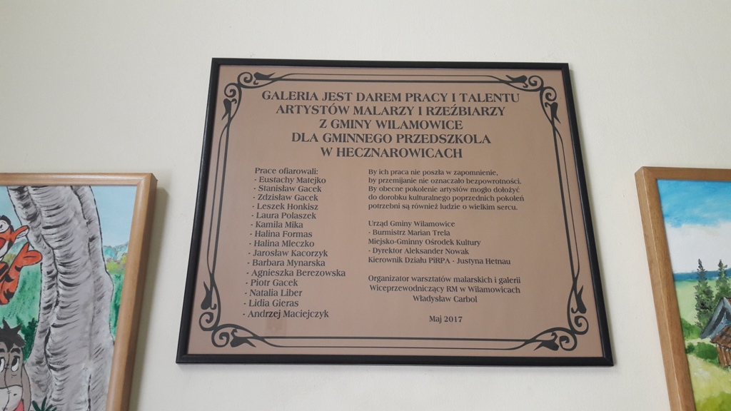 11 maja br. w Przedszkolu Publicznym w Hecznarowicach miało miejsce otwarcie wystawy pt. "Artyści Gminy Wilamowice w darze dla dzieci z przedszkola w Hecznarowicach".