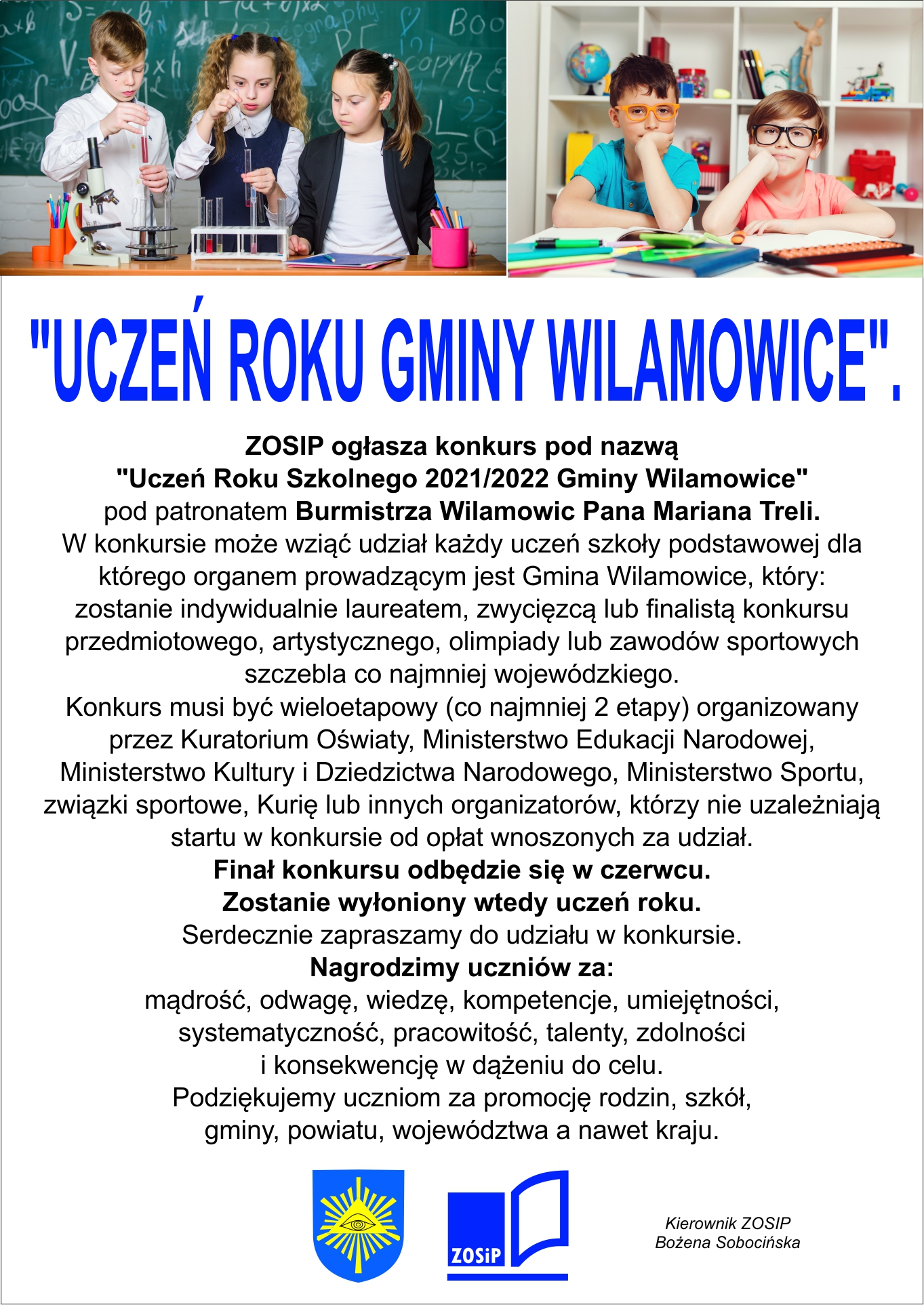 Uczeń Roku Szkolnego 2021/2022" Gminy Wilamowice