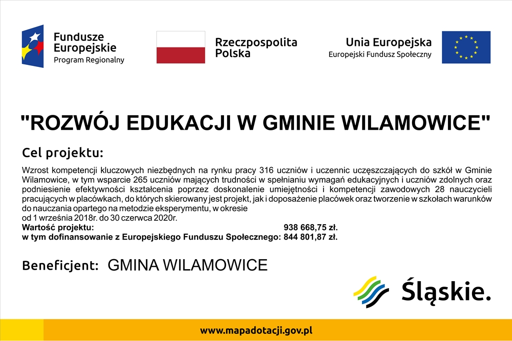 TYTUŁ PROJEKTU: "ROZWÓJ EDUKACJI W GMINIE WILAMOWICE"