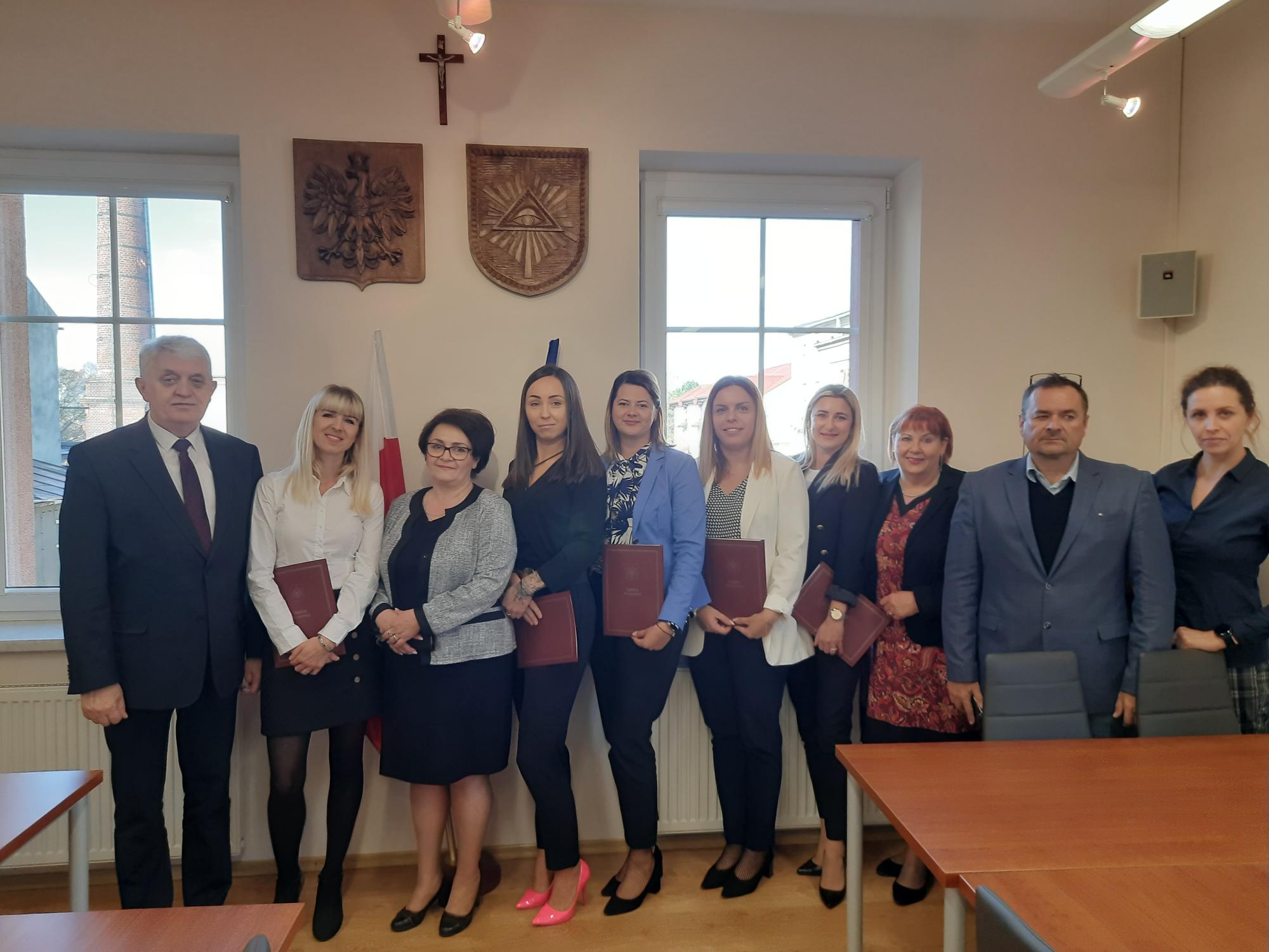 Po odebraniu od nauczycieli ślubowania, Burmistrz Wilamowic wręczył nauczycielom akty nadania stopnia nauczyciela mianowanego oraz listy gratulacyjne.