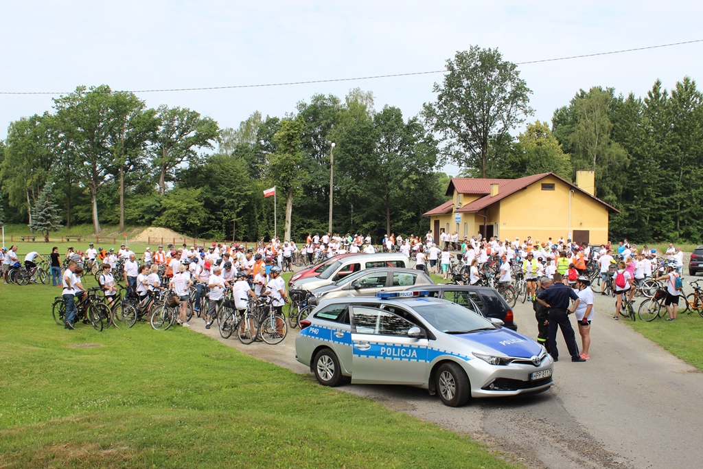 Na starcie przy boisku sportowym LKS „Sokół” w Hecznarowicach uczestnicy zebrali się w białych koszulkach z czerwonymi napisami, by wyruszyć w 24 km trasę. Po raz kolejny w rajdzie wziął udział nasz utytułowany kolarz Przemysław Niemiec.
