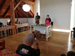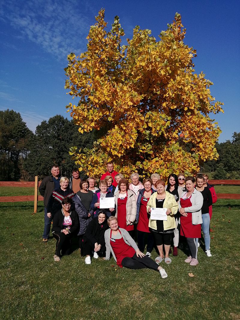Oczywiście podczas tych intensywnie wykorzystywanych dni warsztatowych, były chwile relaksu, spacerów po przepięknym, skąpanym w promieniach jesiennego słońca terenie m.in.: ścieżkami leśnymi, wokół pól słoneczników czy wybiegu dla wierzchowców biegających wolno po pastwisku.Na pożegnanie wszyscy uczestnicy warsztatów otrzymali certyfikaty, receptury wytwarzanych wyrobów oraz zrobione przez siebie kiełbasy.