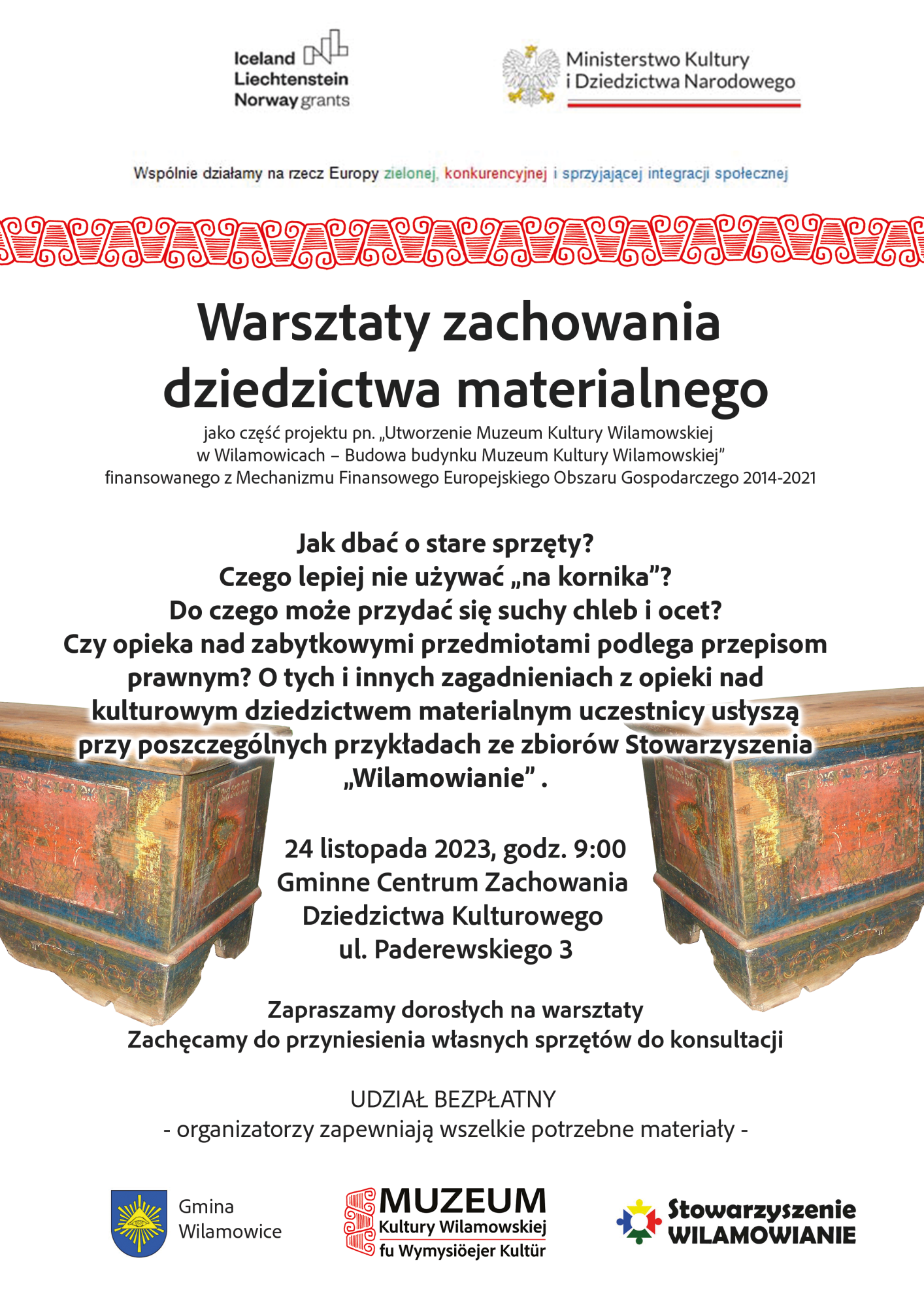 jako część projektu pn. „Utworzenie Muzeum Kultury Wilamowskiej w Wilamowicach – Budowa budynku Muzeum Kultury Wilamowskiej” finansowanego z Mechanizmu Finansowego Europejskiego Obszaru Gospodarczego 2014-2021