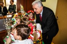 We wtorkowe przedpołudnie dzieci z przedszkola Zespołu Szkół w Wilamowicach oraz Ochronki odwiedziły Urząd Gminy, aby złożyć świąteczne życzenia.