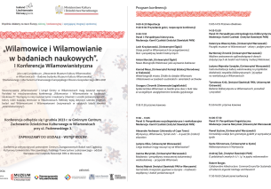 Stowarzyszenie „Wilamowianie” i Urząd Gminy w Wilamowicach mają zaszczyt zaprosić Państwa na międzynarodową konferencję „Wilamowice i Wilamowianie w badaniach naukowych”. Wystąpią na niej naukowczynie i naukowcy (również z uczelni pozaeuropejskich), którzy robili badania terenowe w Wilamowicach. Referaty będą dotyczyć szeroko pojętych badań nad Wilamowicami i Wilamowianami (nazywanych w ostatnich latach również „wilamowianistyką”).