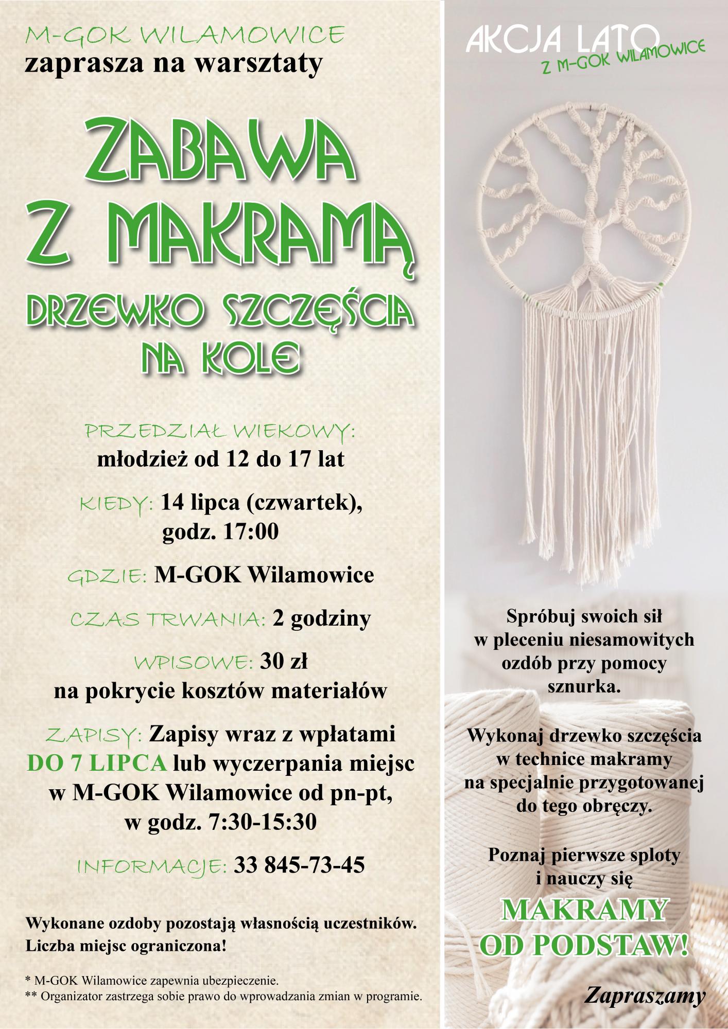Zabawa z makramą - drzewko szczęścia na kole. Zapraszamy na zajęcia 14 lipca