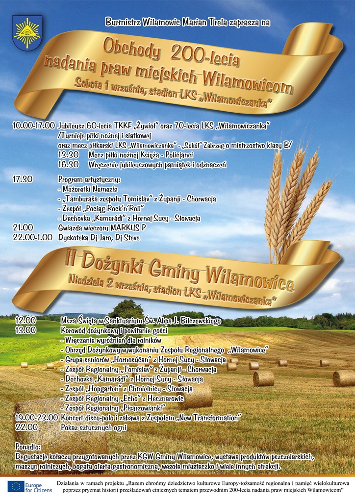 » Zapraszamy do wspólnego świętowania. Obchody 200-lecia nadania praw miejskich Wilamowicom oraz II Dożynki Gminy Wilamowice