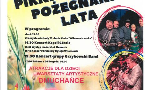 Serdecznie zapraszamy na PIKNIK POŻEGNANIE LATA, który odbędzie się 26 sierpnia 2023r. na stadionie LKS "WILAMOWICZANKA"