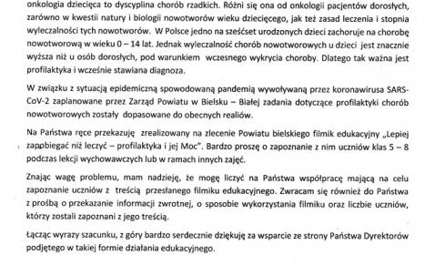 "Lepiej zapobiegać niż leczyć - profilaktyka i jej Moc" - akcja edukacyjna skierowana do szkół w powiecie bielskim