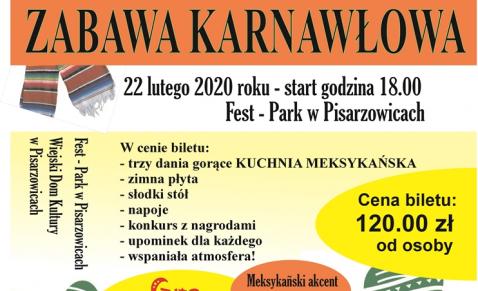 Zapraszamy na zabawę karnawałową do Pisarzowic