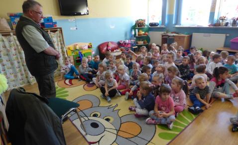Zajęcia edukacyjne przeprowadzone przez pana leśniczego w Przedszkolu Publicznym w Wilamowicach